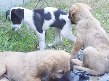 Şimdilerde 1’i siyah-beyaz; ötekiler boz 5 köpek yavruları var.
