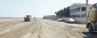 Azgın dalgalar, kıyıdaki “villa”lara zarar verirken, dökülen kum-çakılla villaların denizden uzaklığı yer yer 100 m’ye ulaştı.
