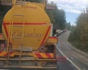 Dün (15 Kasım) Abana-İnebolu yolunda balık yağı nedeniyle kayan TIR, yolu uzun süre ulaşıma kapadı.