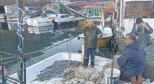 Balıkçı Mehmet Sandıkçıoğlu, Abana Balıkçı Barınağı’nda sergilediği mezgit’i, kilosu 150-200; barbunya’yı da 250 TL’den satıyor. Olta istavriti 125 TL (ErhanYILMAZ).