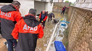 bodrumlardaki suların boşaltılma çalışmaları, Kastamonu AFAD ekiplerinin de desteğiyle sürdürülüyor.