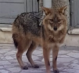 Bir evin bahçesinde dolaşan çakal, komşu evin bahçesinde de bir süre dolaştı ve gözden uzaklaştı.