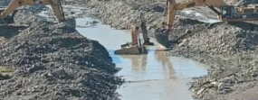 Ayancık Çayı’nda yürütülen “dere ıslahı” çalışmaları sırasında bir iş makinesi suya gömüldü.