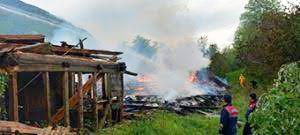 Azdavay ve Şenpazar belediyeleriyle Orman İşletme Müdürlüğü ekiplerinin, ormana sıçramadan södürdüğü yangında ev ve yakınındaki ahır tümüyle yandı.