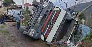 Cide’nin Kuşçu köyü, Gül Mahallesi’nde, 06 DR 1602 plakalı beton mikseri, dönemeci alamayarak, tarlaya girip yan yattı.