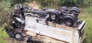 Munip Temel (59) yönetimindeki kum-çakıl yüklü 37 ABN 914 plakalı kamyon, yağmur nedeniyle kayganlaşan yolda denetimden çıkarak devrildi.