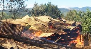 Yangında iki katlı ev, samanlık ve ahır tümüyle yanarak kullanılmaz duruma geldi.