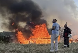 Kısa sürede büyüyen yangın çevredeki samanlıklara da sıçradı.