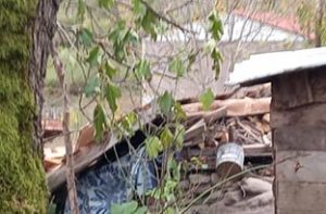 Nefize Keserci (77) evinin bahçesinde dinlenmek için tahıl ambarının altına oturdu.