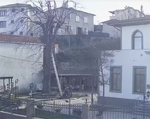 Evrenye’de, Cemal Karademir (53) budama yapmak için cami bahçesindeki ıhlamur ağacına çıktı.