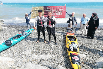 25 Mayıs’ta İstanbul-Kabataş’taki İnebolu Sokağı’ndan yola çıkan Kanocu Ahmet Ergün ve Keremhan Kara, kanolarıyla 480 km’lik yolculuklarının sonunda bugün (9 Haziran) İnebolu Limanı’nda taşıdıkları Türk Bayrağı’nı Vali Avni Çakır’a verdi.