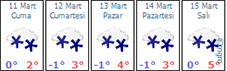 Abana Merkez’de bugünden başlayarak 5 gün kar yağışı var. Sıcaklık 2-5 derece.