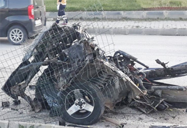 Çarpmanın etkisiyle araç ikiye bölünerek, motor bölümü gövdesinden ayrıldı.