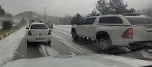 Fındık büyüklüğündeki dolu nedeniyle kimi sürücüler, akaryakıt istasyonuna girerek araçlarını korumaya çalışırken, kimileri de yol kıyısına park ederek yağışın durmasını bekledi.