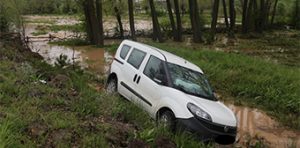 Bir araç, İhsangazi-Kastamonu yolu üzerinde yükselen sel suyu nedeniyle tarlaya sürüklendi.