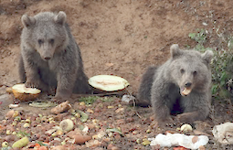 Annelerinin araç çarpması sonucu öldüğü düşünülen ayı yavruları, bir süredir Kastamonu-İnebolu yolunun Küre İlçe girişi yakınlarında görülüyor ve yurttaşlarca besleniyordu.