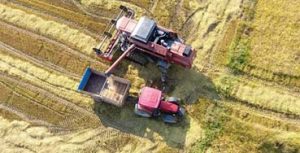 Tarlalardaki suyun kurutulmasıyla tarlaya giren biçerdöverler çeltikleri biçerek kasalara dolduruyor.
