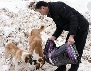 “Buradaki köpeklere yaklaşık 2-3 yıldır yemek getiriyorum. Elimizden geldiği kadarıyla bu soğuk havalarda sokak hayvanlarının yanında olmaya çalışıyoruz. Bu gönüllülük işi. Başkaları olsa buraya yakacak mazotunu düşünür, ekmeğe yemeğe verdiği parayı düşünür.”