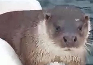 Soyu tükenmekte olan yaban hayvanları arasındaki su samuru, Sinop kent Merkezi’nde, limandaki bir teknenin üzerinde görüntülendi.