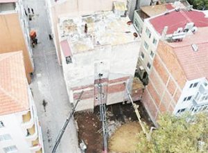 Sinop Kent Merkezi, İncedayı Mahallesi, 1 Numaralı Sokak‘ta yan arsada yapılan temel kazısı sırasında duvarlarında çatlaklar oluştuğu için vinçlerin desteğiyle ayakta tutulan apartmanda önceki gün yıkım çalışması tamamlandı.