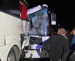 Kazada, 2 otobüsteki 13 kişi yaralandı.