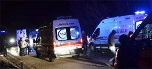 Yan yatan otobüste 30 kişi yaralandı.