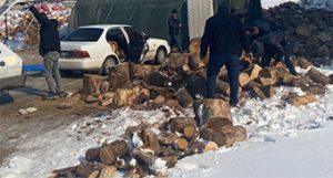 Yardımseverlerin toplama merkezine çuvallarla getirdikleri yaklaşık 300 ton odun, TIR’lara yüklenerek deprem bölgesine ulaştırılmak üzere yola çıktı.