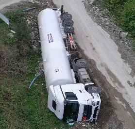 Mehmet A yönetimindeki 41 ASC 142 plakalı LNG yüklü tanker, Türkeli’nin Yazıcı Köyü’nde devrildi.